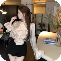 HB6965 Luxury and sophisticated, stylish design, three-dimensional ruffled lace-trimmed blouse for women, summer French style, versatile and lightweight to