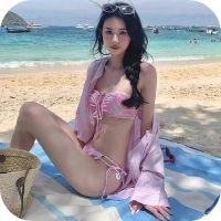 HB6732 Stylish and casual three-piece women's autumn short hooded cardigan jacket + padded bra top + high-waisted skirt